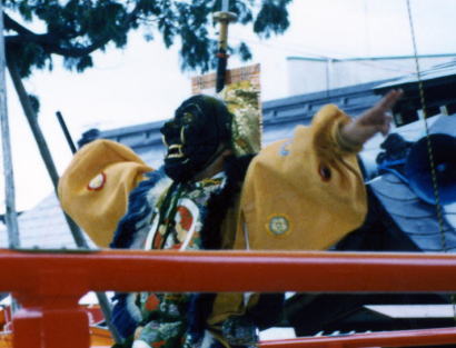舞楽の最後は納曽利。前演目の陵王とセットで、中央の舞楽法会のスタイルと同様、左方、右方のセットで終わる形になっている。
