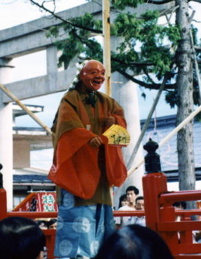 舞楽の6番目は二の舞。安摩の番舞(つがいまい)である。鄙舞楽の世界では、爺と婆と呼ばれ、鼻をかませたりおもちゃを出したりする。
