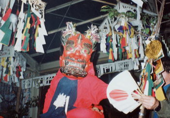 <榊鬼>は3つの鬼の舞の中の2番目。手には文字通り、榊を持つ。