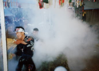 <湯ばやし>は人気の舞。終盤で湯を辺り一面に、まき散らす。