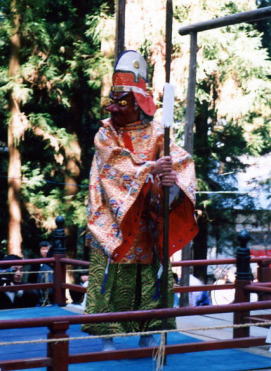 舞楽の2番目は大人の1人舞。鉾を持ち、鼻高の面を着けるため、猿田彦などに附会される。平塩では「天狗の舞」と呼ばれる。