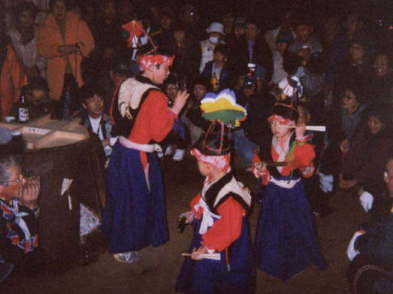 <花の舞>は人気の舞で、大人も優しく取り囲みます。