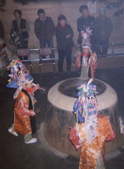 <花の舞>は、採り物を替えて、子どもによって舞われる愛らしい舞。