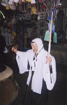 <火の禰宜>は、幣束を持って登場。能面風の落ち着いた表情。