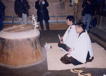 釜の前で行われる儀式。神座ではうたぐらが唱えられる。