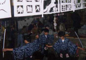 扇・やち・剣と採り物を替えるこの舞は、複雑な動きをする。