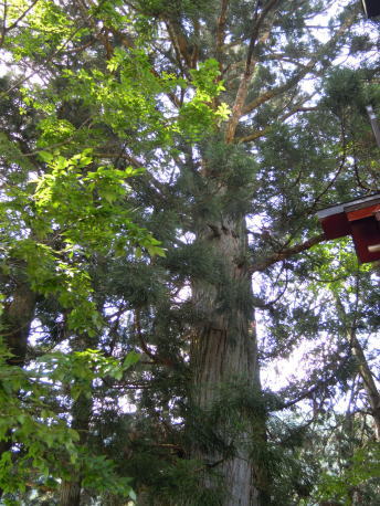 高山市清見町は、市街地から郡上方面へいく「せせらぎ街道」を進むと藤瀬地区にある神明神社の境内に、このスギがあります。かなり背の高いスギの木で、当社の御神木だそうです。