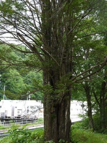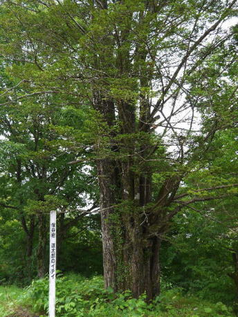 高山市清見町夏厩にあるイチイ。現在は、大スギや大モミで知られる夏厩八幡社の道を挟んだ向かいの御旅所にあります。かつては別の場所にあったものを、高速道路建設のために移植されたものだそうです。当地域には個人名を被せた墓標の樹木がありますが、これもそうしたものの1つでしょうか。
