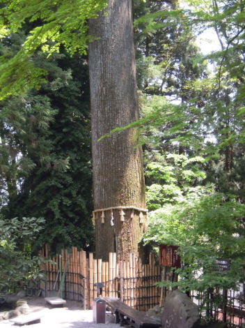 群馬県渋川市に合併した伊香保町は、古くから知られた一大温泉地。少し下ったあたりに、「うどん」で知られた水沢地区があります。このうどんの名前にもなったのが、天台宗の古刹・水沢寺。水沢観音で知られたこの寺の境内にこの大杉が立っています。注連縄が見えますが、大事にされてきた杉です。