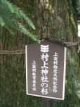 高山市に合併した旧上宝村にある村上神社は、平湯温泉から新穂高方面へ向かう道沿いにあります。その境内にこの大杉があります。真っ直ぐに伸びた姿は空に突き刺さるようです。雪深いこの地にあって、風雪に耐えてきた大杉です。