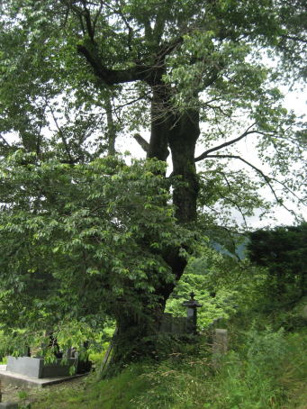 上田市南部の旧・武石村は美ヶ原の麓に位置する。その大布施地区の墓地にある彼岸桜の巨木。毎年4月下旬から5月上旬に開花するといいます。この桜は峠を越えた霊泉寺(上田市平井、旧・丸子町)から持ち込み、植えたものだそうです。