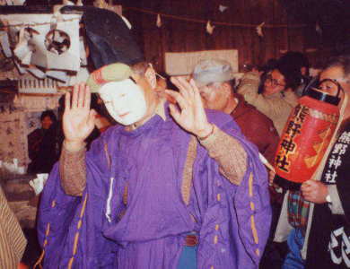 <大黒天>があるのは、小道木と木沢、上島のみという。神太夫夫妻の舞とともに、この舞は笛と太鼓の囃子ではなく、伊勢音頭のメロディが歌われる。