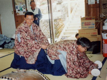 <代掻馬>とも。丸餅に棒をさしたものを持って馬になり、もう一人が代掻きの真似をする。