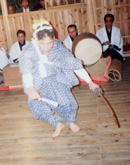 最後の舞。<くなつくり>から<いなぼら>までは田遊びで、唱え事や所作が多かったが、ここで再び激しい舞となる。