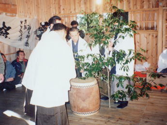「ししの山」というシキミの木を持ち出し、うたぐらを唱えながら桑つみの所作をする。