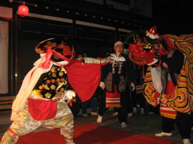 氷見市は富山県西部、石川県に接する海沿いの町。獅子舞の多い富山県でも特に数多くの伝承があり、110ヶ所を越えるといいます。まさに「獅子の里」です。それぞれ独自の形式をもっていますが、基本的に胴幕に何人かの人が入る「百足獅子」、シシトリは採り物によって激しく舞う天狗というスタイルが「氷見獅子」と呼ばれます。氷見から各地へ伝承していって、広まっていったようです。
