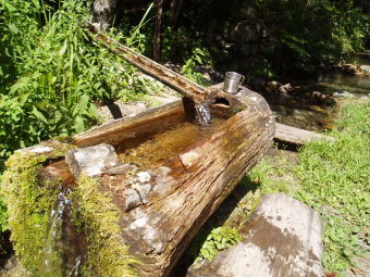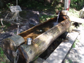 木曽郡大桑村野尻の名勝地・阿寺渓谷を進んでいくと「砂小屋キャンプ場」にあります。大変冷たい水で、あたり一帯に水が湧き出していました。昔から知られていた水で、この谷あいでは一番冷たいといいます。かつての木曽の御用林を管理していた尾張藩の役人が派遣されてましたが、その奥方が色白になって帰ってきたので、理由を聞くとこの水を朝夕使っていたためといい、以来「美顔水」と呼ばれるようになりました。