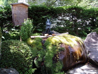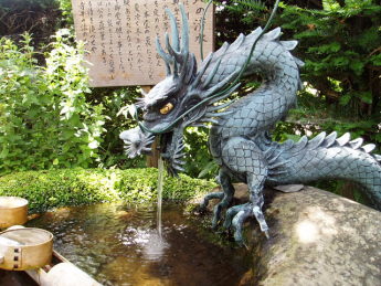 木曽郡木曽町、旧日義村の、旭将軍・木曽義仲公と巴御前の墓所のある徳音寺の参道にあります。寺の本堂裏からは湧水が見られました。源泉ははっきりしませんが、裏手の朝日山らしいと言われています。徳音寺の中興3世覚門大和尚が「白蛇の霊夢」を見て、寺籍を定めたといいます。その霊験あらたかな水を引いて、水場にしたものです。