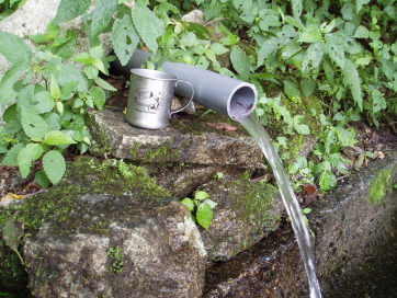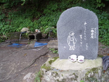 下伊那郡清内路村から木曽へ抜ける清内路峠の麓、国道256号線沿いにある清水。この峠道の街道沿いには一番から七番と清水が続きます。この一番清水は、水量も豊かで、塩ビ管で2ヶ所の水場が作られていました。この水場の脇には、漂泊の俳人・種田山頭火(1882ー1940)の「山しずかなれば笠をぬぐ」の句碑が建ちます。これは昭和9年に伊那の俳人・井上井月の墓参の旅で、清内路峠での雪に行きなずんだ時の句であるといいます。