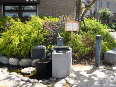 松本市大手の西堀公園に出来た新しい水場。ユニークな形の水受けに流れ出る水場と、黒っぽい石の鉢から水が湧き出していました。道路の脇のこぢんまりとした公園に、清潔感のある水空間が作られていました。