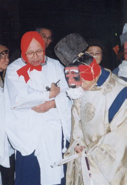 翁芸。拝殿前に現れ、語りを行う。3番目の翁のものは特に「猿楽」という。