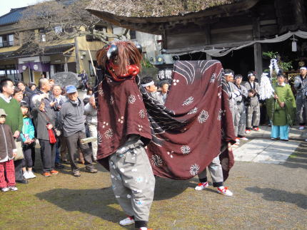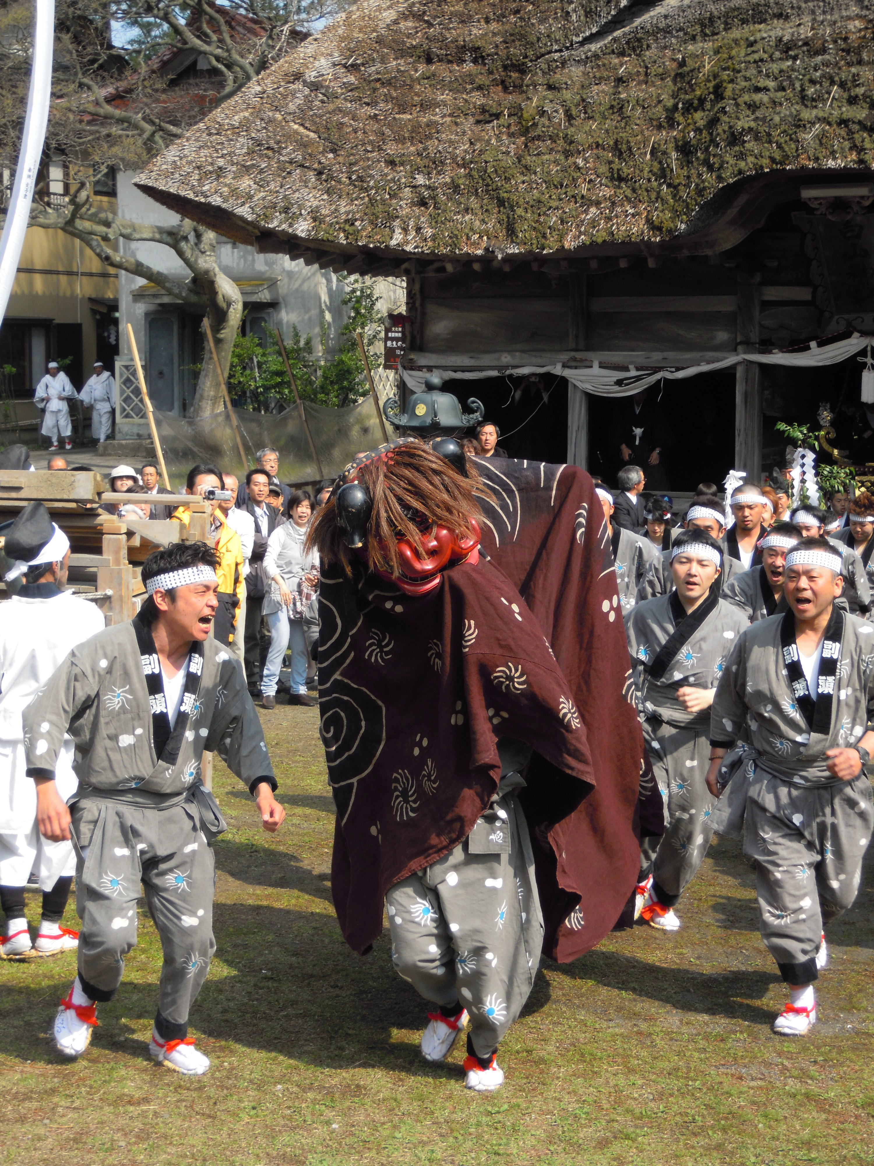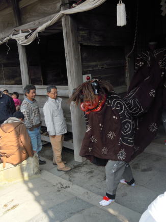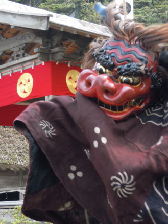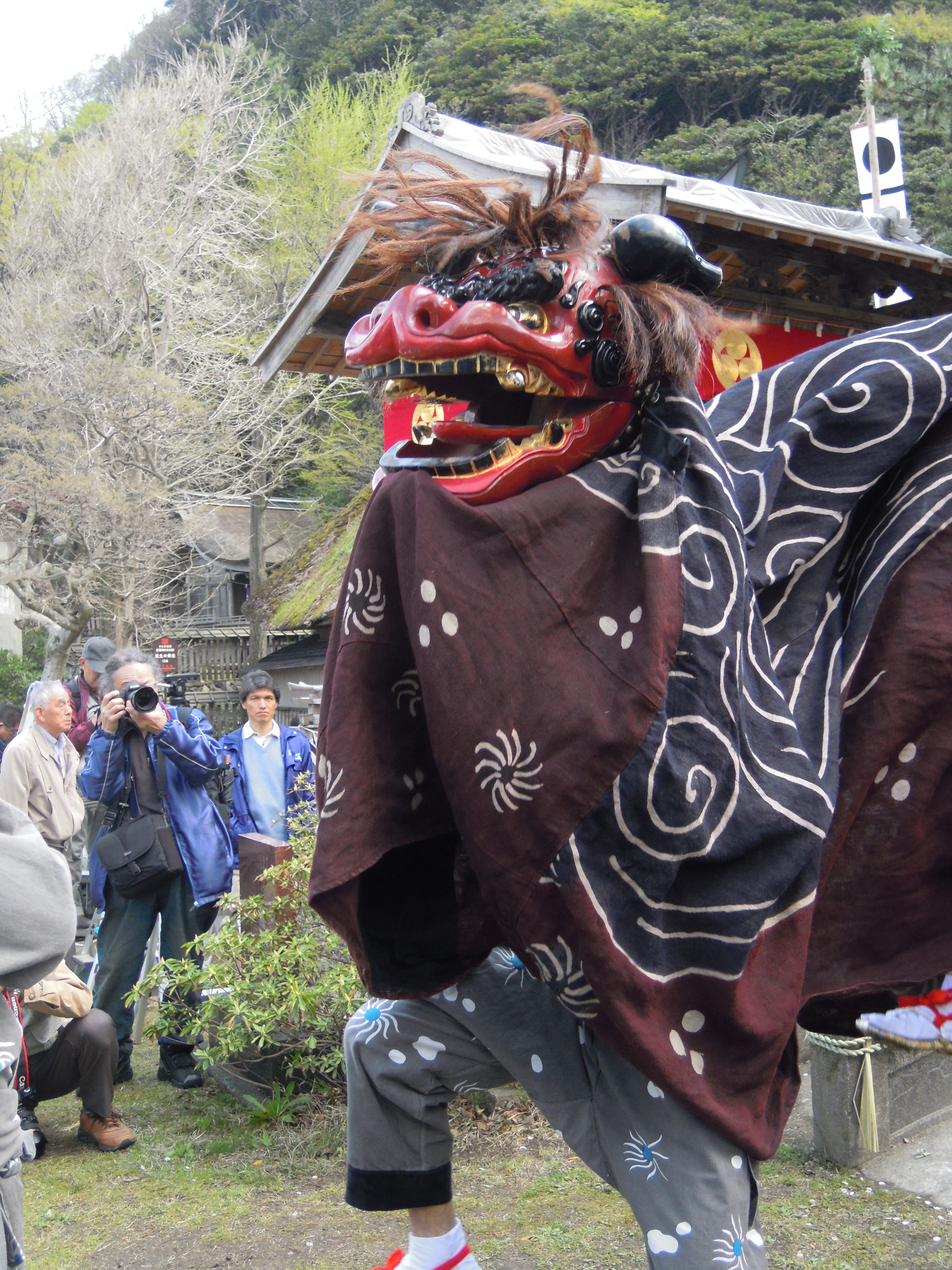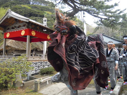 御神嚮の獅子は、隔年で小泊地区と能生地区で担当する。始めは「眠り」を表す舞、やがて交替しながら激しい足さばきの舞を続けながら、ゆっくりと境内を廻っていく。