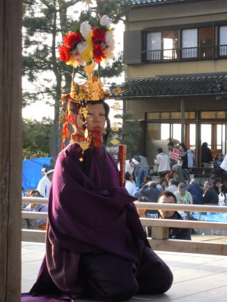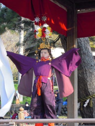 舞楽の9番目は「児抜頭」。大人の抜頭が「能抜頭」でありそれに対するものではあろうが、共通点は少ない。稚児の中の一の戸が務める、美しい舞。