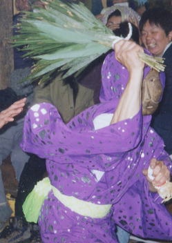 神太夫との夫妻。笹を持って大騒ぎ。「ばあさ!ばあさ!」の声に笹を叩きまわる。