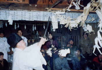まだ「ひいな(湯飾り)」に残っている悪い神様を切り捨てる舞。