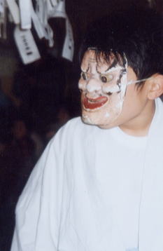 <琴平神社>は面形の舞。素朴な面である。一見、里神楽風。