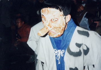 <関御神>は面形の舞。素朴な鼻高の面。
