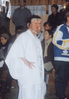 <関明神>は面形の舞。素朴な鼻高の面。