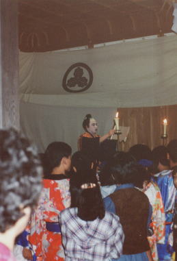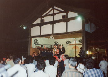今年成人式を迎える男子3名による。舞台左には、船とそれを漕いでいる人形が置かれている。
