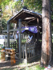 房山では、大星神社境内の弥栄神社(八坂神社)前で奏演してから、すべて行われるようになっています。八坂神社の祭神は、素戔嗚尊に附会される牛頭天王であり、近世期までは上田城下の祇園祭の出し物であったことの裏付けとなっています。また、真田氏の後に入部した仙石氏の城固めにも舞われたといい、古くから祝賀の場において「獅子躍」として舞われてきました。