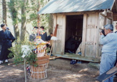 金谷の御鍬様の社。御鍬様と御輿の扉が開かれ、御神体の対面。