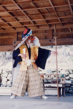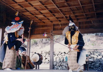 2番目の演目。初め、猿田彦が鉾と中啓を持って舞う。途中、天若彦が弓矢を持って登場。やがて問答となるが、やや省略されている。