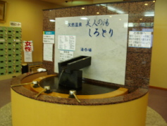 外観は清潔感のある大きな施設!といった印象です。中へ入ると階下に受付があります。広い脱衣場そして浴場もかなり広々としています。 そして大変効能がありそうな感じの湯でした。アルカリ性の湯は、ヌメヌメとした感じで、ネーミングの通り、美肌効果がありそうです。 ま 木々の緑が目に入り、まさに癒しの空間です。 また入口には飲泉所もありました。源泉は消化器病、糖尿病、痛風、肝臓病などに効くそうです。 わたくしが訪ねたのは、旧盆の白鳥おどりの徹夜おどりの日。盆ということで混んではいましたが、かなり広い施設で、割合ゆったりと入れました。 |